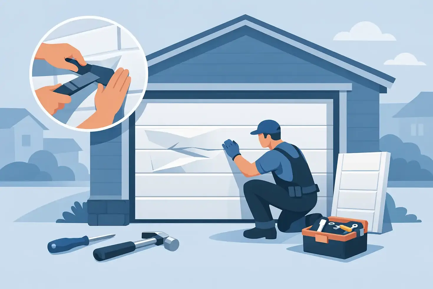 A lot of people ask how to repair garage door panel damage when what they really need is a section replacement. That is common after a vehicle bump, storm impact, or repeated stress on an older door.